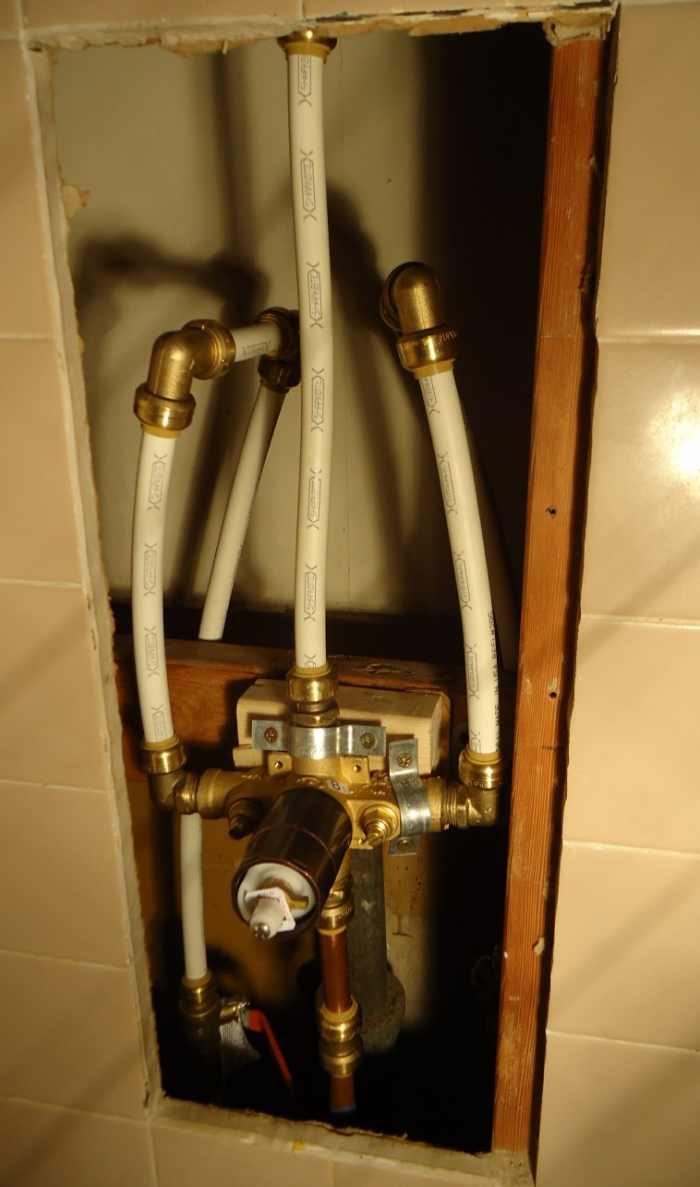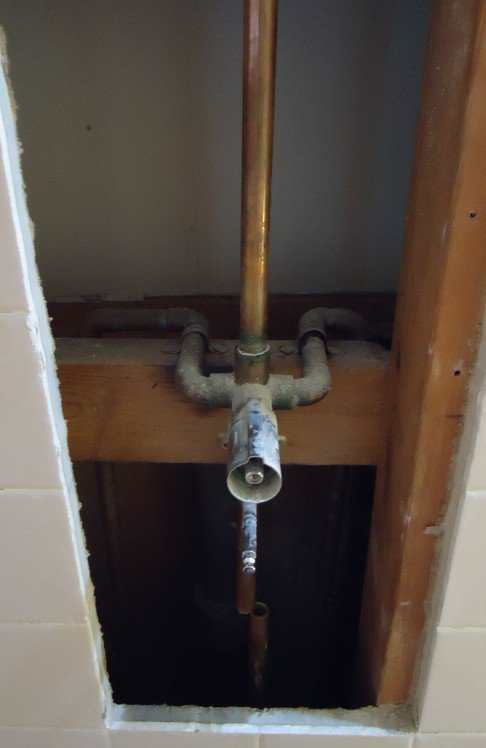 A typical older shower valve installation.