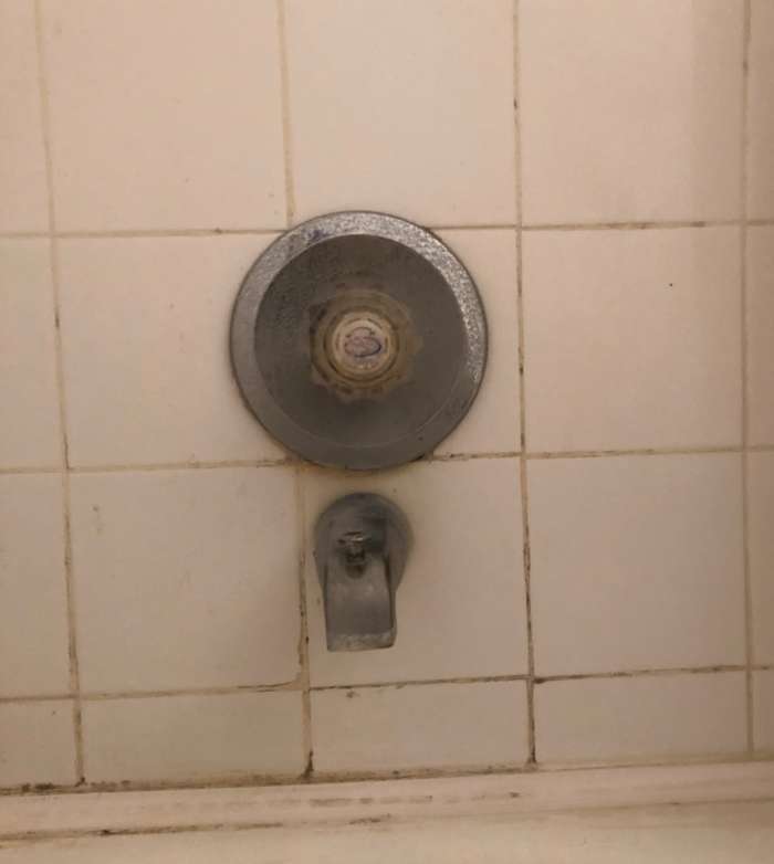 Replacing this worn shower valve with a modern model helps complete the bathroom remodeling project.